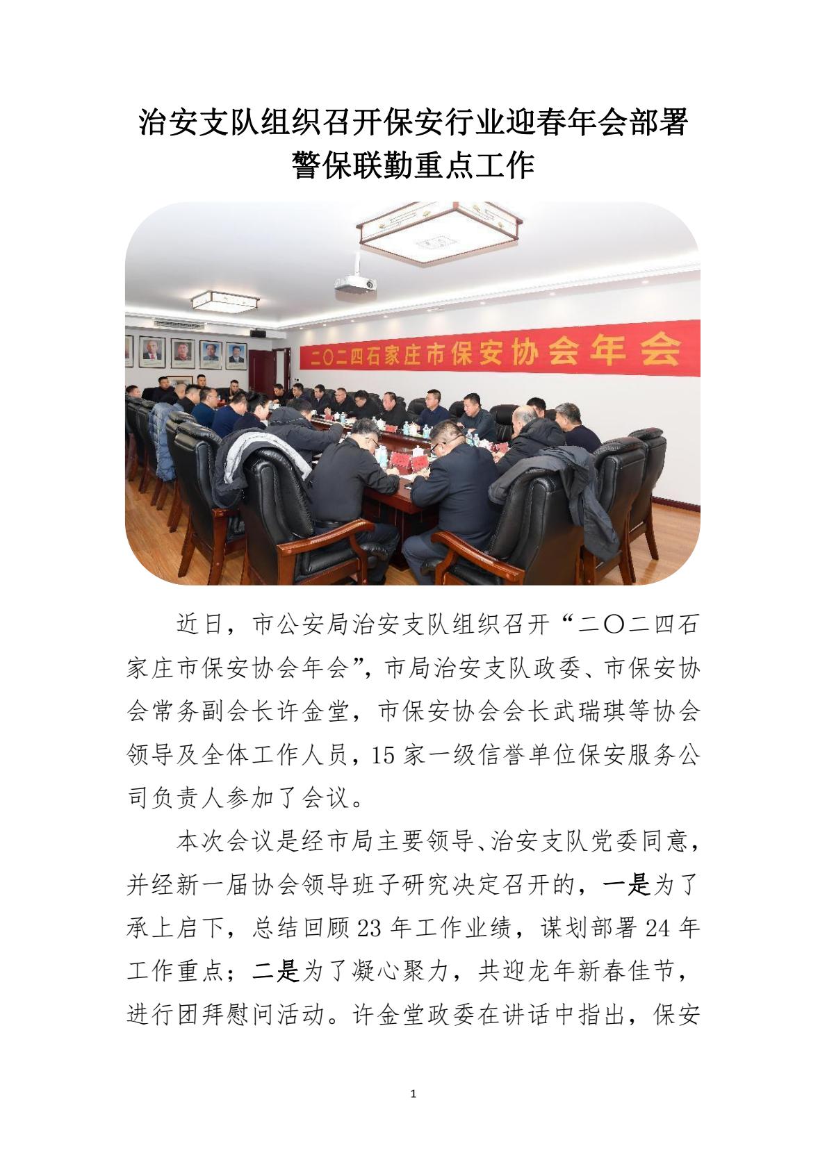 治安支队组织召开保安行业迎春年会部署警保联勤重点工作