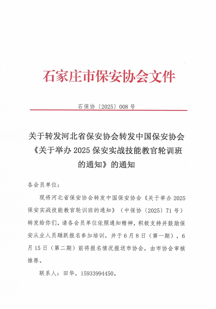 关于转发河北省保安协会转发中国保安协会《关于举办2025保安实战技能教官轮训班的通知》的通知