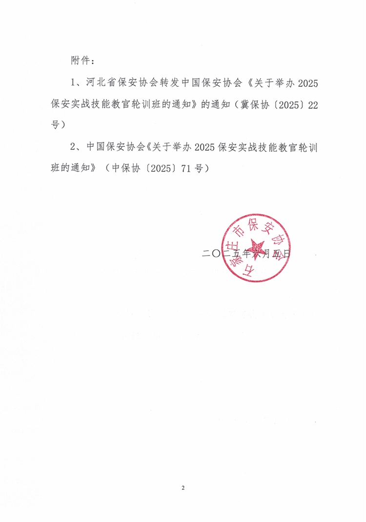 附件2、中国保安协会《关于举办2025保安实战技能教官轮训班的通知》
